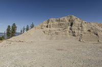 A rugged mountain landscape in British Columbia, Canada. Clear skies over the Kelowna region reveal the unique Aeolian Landforms and rocky outcrops. Off-road tracks lead to gravel quarries and open spaces in the Okanagan Valley.