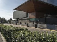 A sunny day in Los Angeles, California. The clear sky highlights the modern architecture of the city. The office buildings in the business district stand tall with their Brutalist facades. The urban design is complemented by the lush vegetation and vibrant city life.