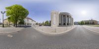 A street view of a circular Brutalist architecture building surrounded by trees and other buildings. The monochrome facade and clear sky enhance the symmetry of the urban landscape. This iconic tourist attraction is a must-see in the city.