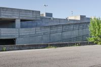 A view of a modern architecture building in Toronto, Ontario. The building features a Brutalist architecture facade with low concrete lines. Surrounding vegetation and grass add a touch of nature to the urban setting.