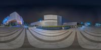 A modern architectural masterpiece in the heart of Shanghai's business district. The building's facade is illuminated with neon lights, creating a vibrant city life atmosphere. The open space plaza, lined with trees, offers a serene escape from the bustling metropolitan area.