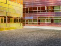 A modern office building in the business district of Holland, Netherlands. The multicolored facade stands out against the open spaces and the gravel surface of the road. A perfect representation of modern architecture in Europe.