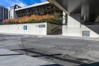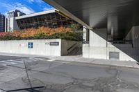 A cityscape in Ottawa, Canada on a sunny day. Asphalt roads weave between buildings and a bridge spans over an underpass. Trees and vegetation provide shade along the road. A bustling urban scene in the business district.