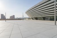 A modern architecture in the bustling city of Shanghai, China. The sleek building stands tall against a clear sky, surrounded by the urban jungle. This metropolitan area is the epitome of urban design and business in Asia.