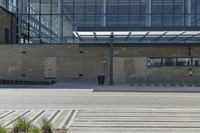 A modern architecture office building in Toronto's business district. The brownstone facade, composite material lines, and urban design make it stand out. Grey stone and brick elements blend harmoniously with the surrounding urban vegetation.