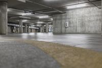 A low-angle view of a concrete street in Los Angeles, California. The cityscape is dominated by architecture with a mix of buildings and walls. Open spaces and parking lots offer ample surface for parking in the city.