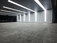 a large parking garage with lights that are attached to the ceiling and concrete flooring
