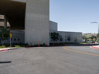 Capture of modern architecture against a clear sky in Los Angeles, California. Asphalt roads weave through the suburban landscape. A typical Californian day on a modern campus.