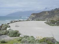 This image captures the beautiful coastal landscape of Big Sur, California, USA. From an elevated viewpoint, the view extends over the rugged cliffs and headlands along the Pacific Coast Highway. The grey sky creates a moody atmosphere as it hangs over the open space and recreational areas. The rocky shore and the vast expanse of the ocean create a stunning contrast. This photo offers an overlook of the bay and the inland areas, showcasing the natural beauty and tourist attractions of the area. Experience the expansive and breathtaking views of Big Sur in this captivating image.
