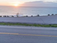 A picturesque view of the California coast from an elevated viewpoint in Big Sur. The sun shines on the expansive ocean, as two people enjoy a bike ride along the coastal road. A sunny and recreational day in nature.