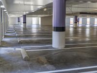 A modern architectural marvel in Los Angeles, California. This large empty building features a parking garage with rows of parking spaces on the floor and pillars. The concrete structure and sleek design reflect the metropolitan vibe of the city.