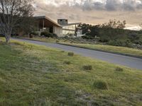 California's Curve Road: Lush Green Lawn and Modern Homes