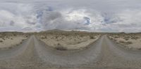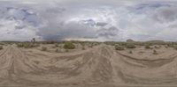 California Desert: Curved Dirt Tracks Under Dark Clouds