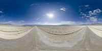 A stunning view of California's desert landscape, featuring a network of tracks and roads. The arid terrain is highlighted by the golden sunlight, creating a rugged and gloomy atmosphere. A perfect representation of the natural environment in California.