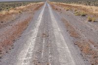 A rugged dirt road winds through the desert landscape of California. Clear skies and mountains create a breathtaking backdrop. Off-road enthusiasts can experience the thrill of driving on this gravel track.
