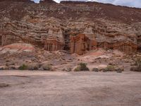 Rugged and gloomy landscape in California's desert. Brown and barren surface with rock walls, cliffs, and rugged terrain. Open spaces and off-road tracks blend with gloomy grey skies, creating a natural environment full of Aeolian landforms.