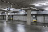 an empty parking garage with no parking spaces in it, and a sign for park square