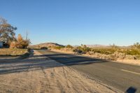 This is an image of an endless road in Landers, California. The asphalt road cuts through the arid desert landscape, with the clear sky above. The rural nature of the area is reflected in the wide expanse of untouched land on either side. This photo captures the serenity and vastness of the California countryside. The road stretches into the distance, seemingly endless, inviting the viewer to embark on an adventure. This is a typical day in rural California, where the open road offers endless possibilities.