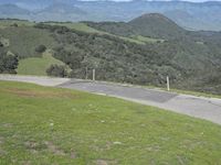This image captures a scenic road in California, USA. The asphalt road winds through a majestic landscape of mountains and hills covered in green grass. The clear sky above creates a picturesque view of nature. The road curves along the highlands, providing a glimpse of the beautiful mountain pass. The rural surroundings and elevated plain showcase the natural beauty of this area. This photo represents a perfect day for a drive, allowing travelers to fully appreciate the captivating scenery of California’s mountainous landscape.