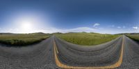 two identical pictures are featured on the same picture and are of roads merging in different directions