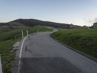 A white motorcycle on an elevated road in California, surrounded by lush green hills and a clear sky. The break of day illuminates the picturesque landscape. Nature's beauty merges with the infrastructure of the road.