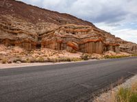 A picturesque view of a mountain road in California during the early morning hours. The sky is filled with clouds, creating a dramatic backdrop for the rugged desert landscape. The road surface winds through the mountain slopes, surrounded by untouched nature.