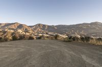 An elevated dirt road in Ojai, California, surrounded by mountains and open spaces. Clear sky highlights the natural beauty of the rural landscape. A perfect day for exploring the high mountain landforms.
