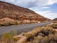A breathtaking landscape in California, USA. The majestic mountains create a stunning backdrop against the clear blue sky. Desert vegetation thrives amidst rocky bedrock. A scenic road winds through the highland, surrounded by nature's beauty.