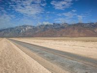 An off-road track cutting through the rugged desert landscape of California. Surrounded by mountains and sparse vegetation, this road offers a thrilling adventure for nature enthusiasts. A clear day with a vast horizon.