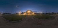 California Night: Church Lights and Lush Grass