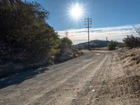 A sunny day in California along the iconic Mulholland Road. The rugged landscape and off-road track offer a recreational escape from the bustling city of Los Angeles. Clear skies and visible contrails create a picturesque scene.