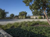 This is an image of a rural landscape in Los Angeles, California, USA. The photo showcases a house situated in an open space, surrounded by lush grass, trees, and vegetation. In the foreground, there is a stone wall and a shed, adding to the charm of the property. The clear sky above enhances the beauty of the scene. This scenic view represents the rich agricultural heritage of the area, with rock and gravel surfaces complementing the picturesque landscape. It captures the essence of rural living in California.