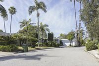 Aerial view of a low residential area with houses and properties in Los Angeles, California, USA. The photo shows a sunny day with palm trees, vegetation, and hills in the background. The road appears straight and surrounded by trees. The image captures the suburban atmosphere and real estate scenery in this iconic city. The view includes famous neighborhoods like Beverly Hills and Bel Air.
