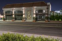 A classic architectural gem in the heart of Los Angeles. This old building is beautifully illuminated at night on a quiet city street. A hidden treasure in the bustling art district.