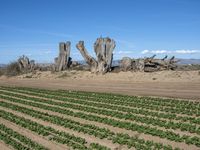 This image captures the rugged beauty of the Californian landscape, with a clear sky overhead and a vast expanse of plains and fields. A road winds through the countryside, surrounded by sandy terrain, dirt tracks, and grassy fields. Tall trees dot the landscape, adding a touch of green to the scene. The rocky geology of the area is visible in the formations and vegetation adapted to the harsh environment. This photo showcases the rural beauty of California, with its diverse agriculture, national parks, and stunning natural landscapes.