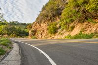 A picturesque California dawn with a scenic road winding through the mountains. Lush landscape blends with expansive skies and fluffy clouds. Serene and tranquil, a perfect day to embrace nature.
