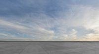 A California sunrise, with the sun visible through the clouds. The concrete surface reflects the dawn light, creating an emotional and sunny atmosphere. This open space in the USA is a perfect spot to watch contrails and enjoy the sunshine.