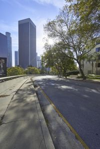 A sunny day in Los Angeles, California, showcasing the city's iconic architecture and urban skyline. The vibrant cityscape is accentuated by lush trees and a network of roads and infrastructure. Contrails streak across the clear blue sky, adding a touch of serenity to the bustling metropolitan area.