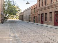 This is an image of a classic architecture hotel in Los Angeles, California, USA. The low dawn light casts a warm glow on the cobblestone road leading up to the hotel. The clear sky provides a beautiful backdrop for the urban setting. The hotel blends seamlessly with the cityscape, showcasing the unique architecture of Los Angeles. This photo captures the essence of a sunny day in the city, where classic architecture meets modern urban living in California.
