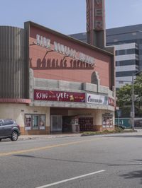 A classic architecture building in downtown Los Angeles, California. The mixed-use neighborhood showcases urban living with its diverse facade. The town's real estate advertising font adds to the charm of the city.