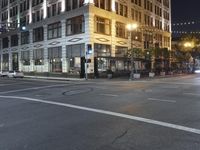 This image captures the dynamic cityscape of Los Angeles, California, USA at night. The photo showcases the iconic mix of classic and modern architecture in the city, with many buildings illuminated by artificial light. The streets are lined with road markings and street lights, creating a vibrant and lively urban atmosphere. In the foreground, a bustling neighborhood with restaurants and bars can be seen, providing a glimpse into the city's diverse culinary scene. This photo represents the energetic and vibrant nightlife of Los Angeles, making it a great addition to any stock photo collection.