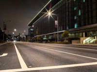 This photo depicts a cityscape in Long Beach, California, USA. The modern architecture of office buildings lines the streets, illuminated by artificial light from streetlights and windows. The road surface, made of asphalt, is marked with a white arrow symbol. The gloomy grey sky creates a dark atmosphere, contrasting with the urban design and business district. The photo captures the essence of city life at night in Long Beach, with traffic lights and stoplights visible in the background. This image represents the urban infrastructure and architecture of California's bustling city.