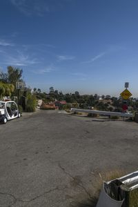 An aerial view of the bustling cityscape of Los Angeles, California. The clear sky contrasts with the modern architecture and skyscrapers. Residential suburbs and open spaces can be seen amidst the urban design and thoroughfares.