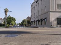 Classic architecture and tree-lined streets adorn Los Angeles, California. A clear sky illuminates the city's iconic buildings and storefronts. Urban design meets suburban charm in this bustling neighborhood.