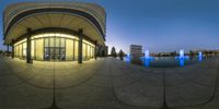 A stunning view of Los Angeles at night, showcasing its modern architecture and iconic skyline. The fountain and clock outside the opera add to the city's charm. A perfect blend of urban design and open spaces.