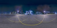 A view of the stunning Los Angeles skyline at night, with modern architecture and city lights illuminating the cityscape. The clear sky contrasts with the dark surface of the road. A metropolitan area filled with futuristic architecture and high-rise buildings.