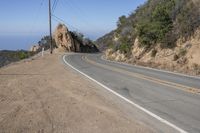 A picturesque road stretching through the low lands of California, USA. The asphalt road, surrounded by beautiful landscape and mountains, leads through a clear sky day. Lush green trees line the curve of the road, enhancing the natural beauty. The road surface is well built and showcases the efficient infrastructure. Travelers can admire the geology of the Malibu Mountains while enjoying the pleasant drive. The highway offers multiple lanes for smooth mode of transport. Look out for the stunning mountain pass and the rocky terrain along the thoroughfare in this breathtaking part of California.