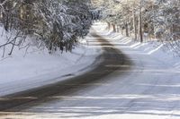 Canadian Ontario Landscape Road Through Snowy Forest