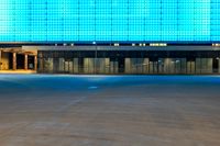 This image showcases an open space in Toronto, Canada. The photo captures an empty parking lot in front of a brightly lit building with blue lights, creating a striking visual contrast. The scene is set at night, with the lights illuminating the surroundings. The image portrays the profile of the building against the dark sky, emphasizing its architectural features. This photo represents the vibrant nightlife and urban atmosphere of Toronto, offering a glimpse into the city's bustling energy.