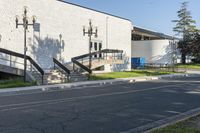 A modern architecture building in the residential area of Toronto, Canada. Clear sky illuminates the city, showcasing the urban design and infrastructure. Streets lined with houses, warehouses, and loading docks display the vibrant city life.